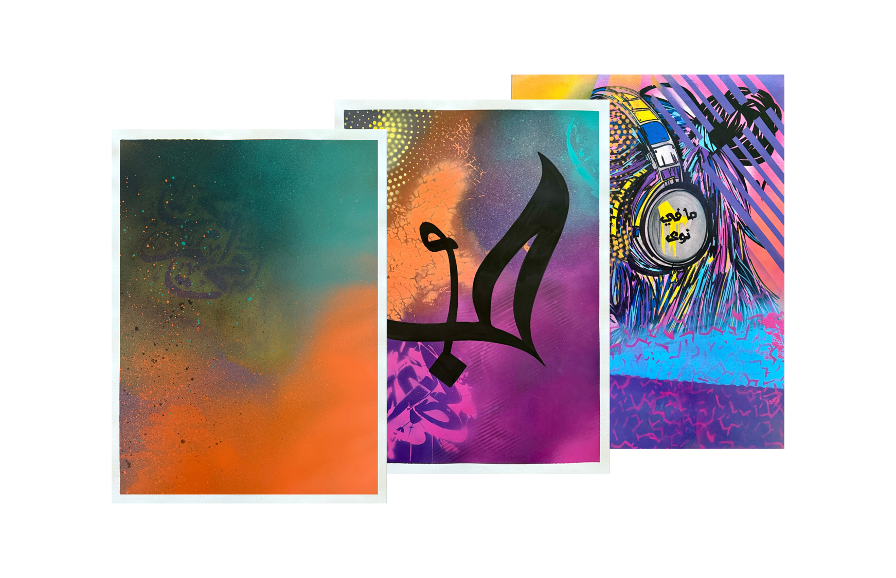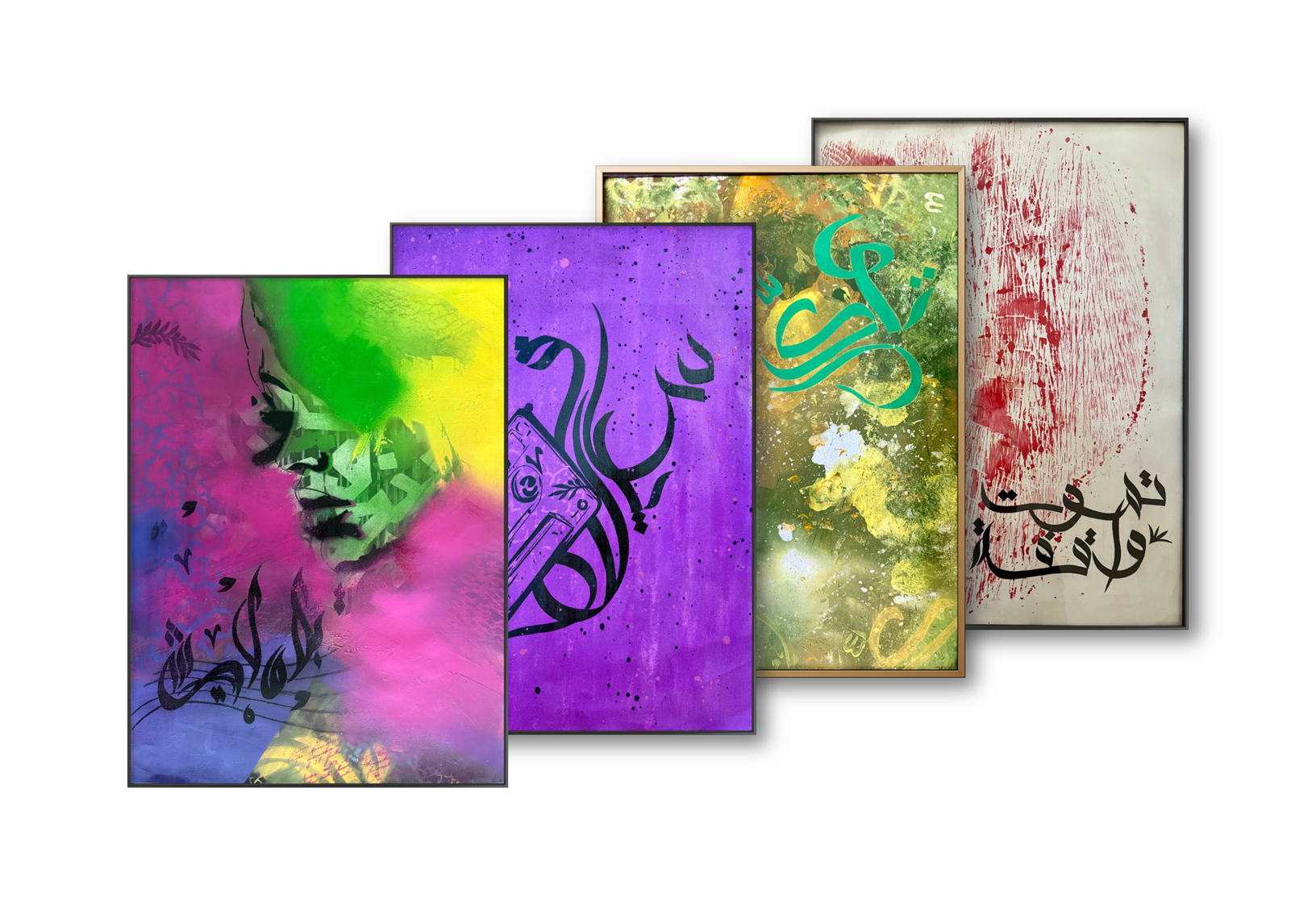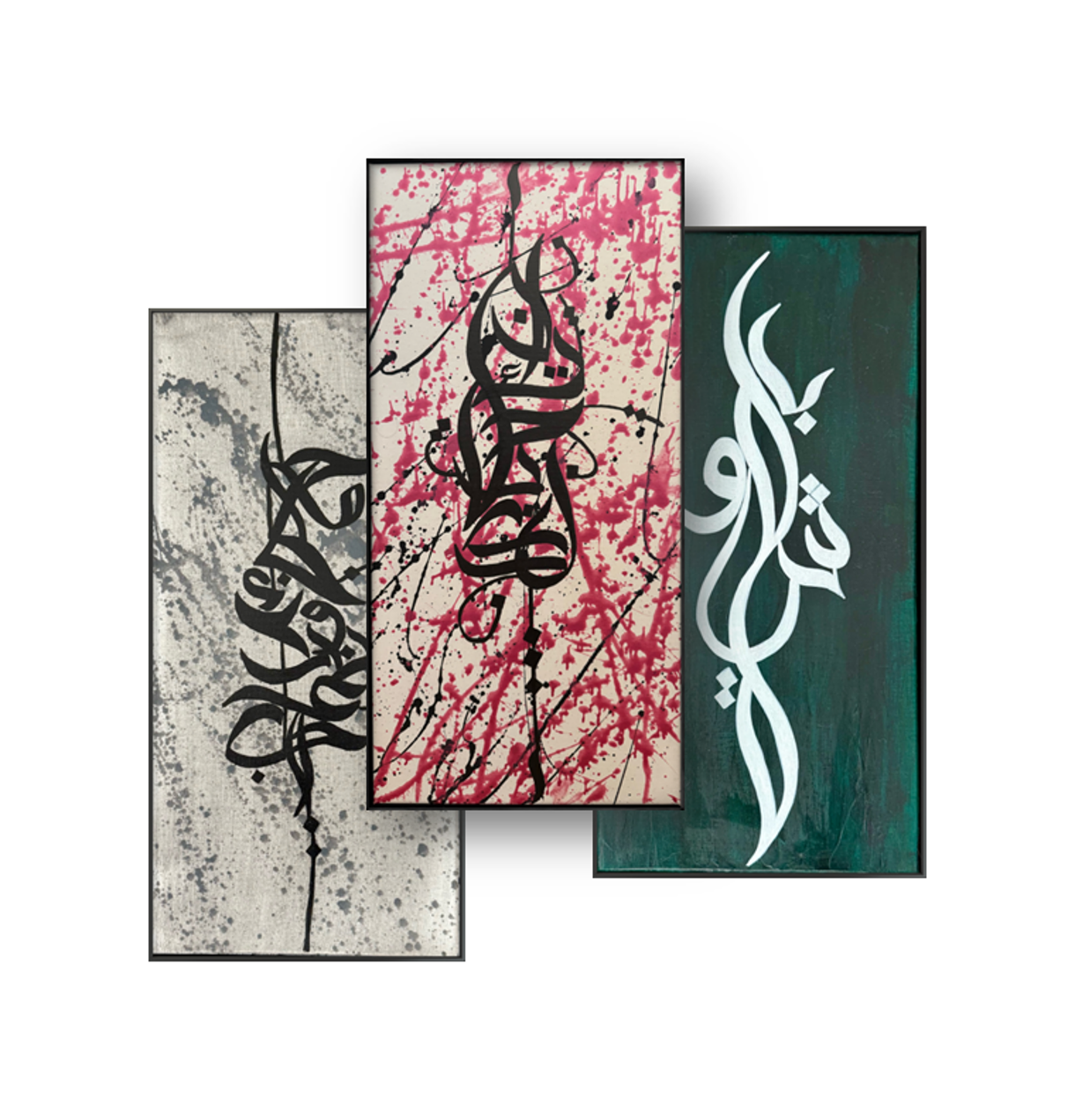 My studio is where I explore ideas through calligraphy, graffiti, color, and juxtaposition. I often begin with calligraphy, using tracing, digital design, or design by hand.