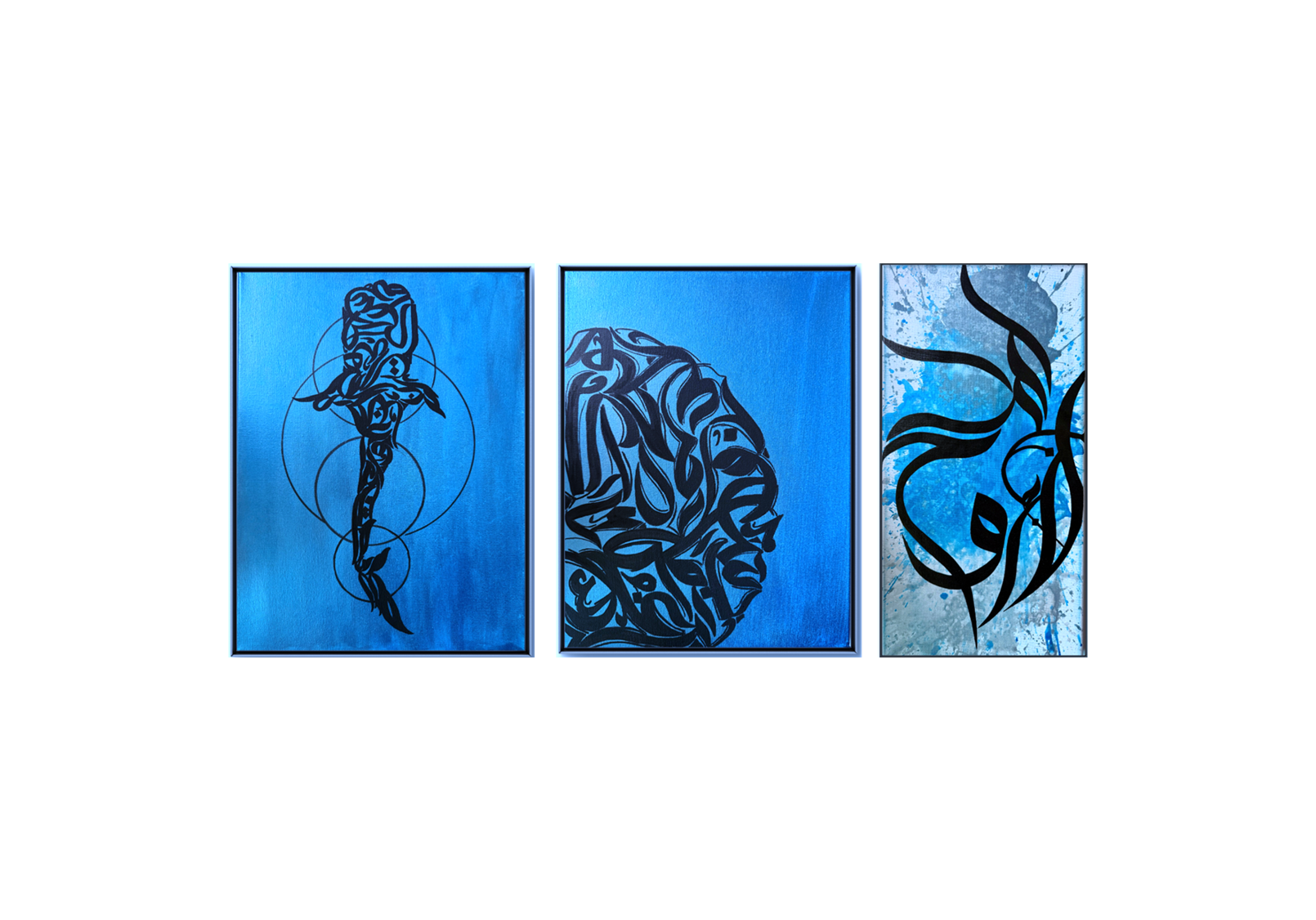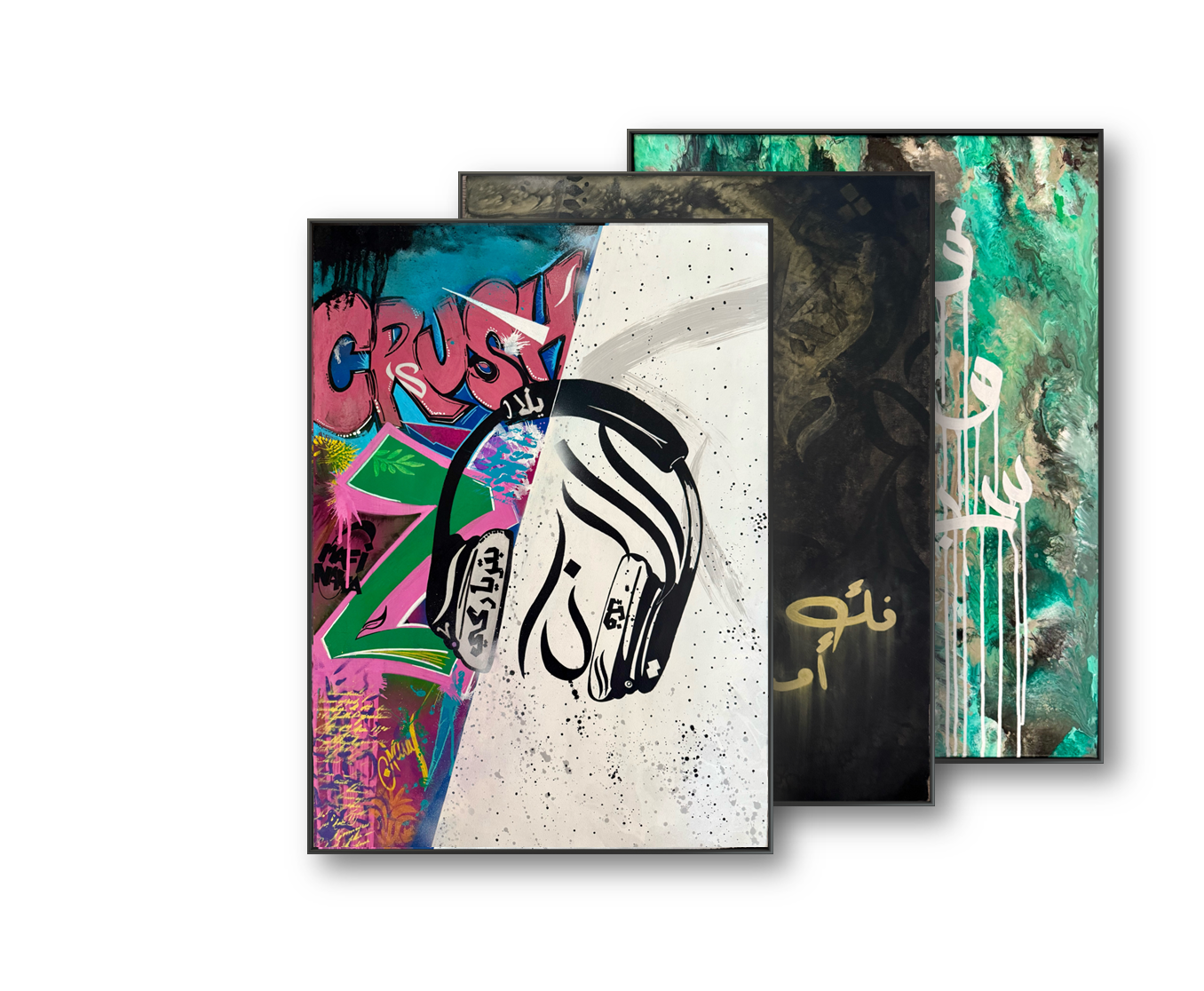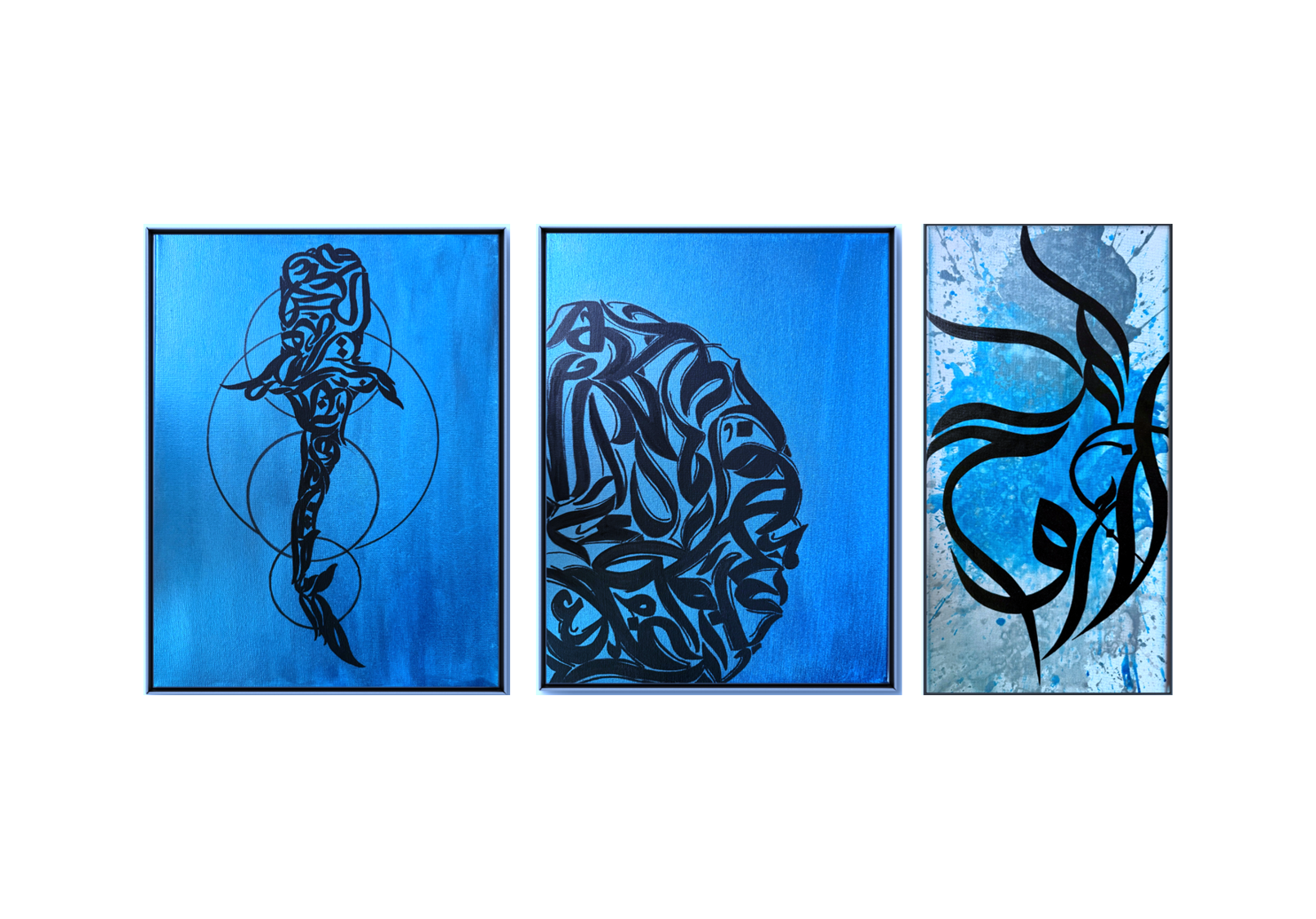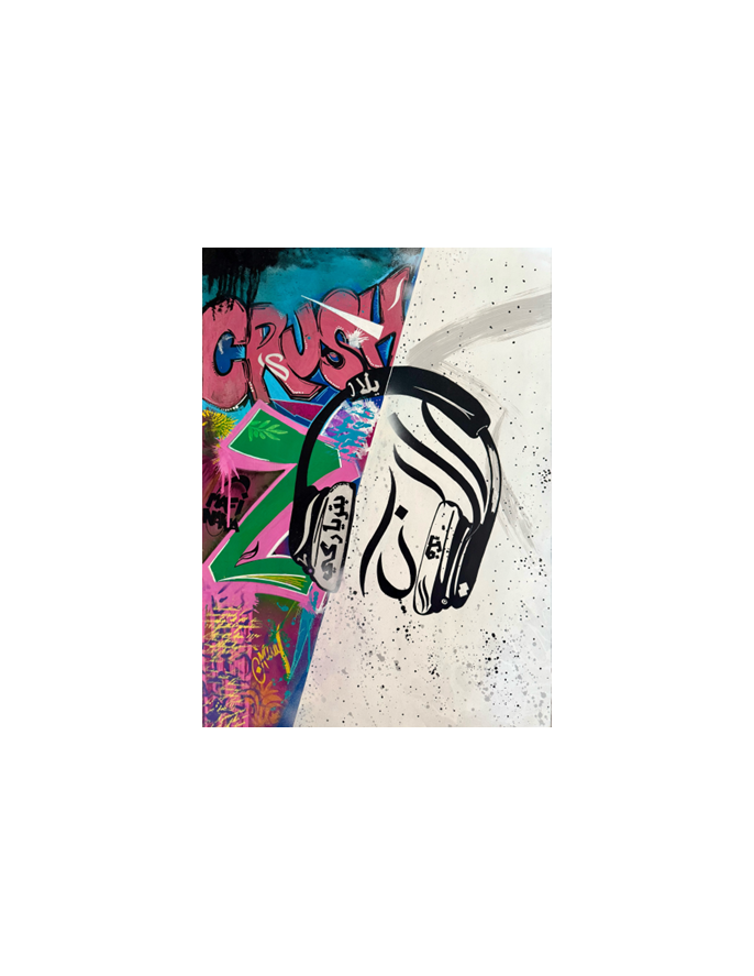 My studio is where I explore ideas through calligraphy, graffiti, color, and juxtaposition. I often begin with calligraphy, using tracing, digital design, or design by hand.
